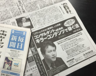 毎日新聞2面に、発行元の同文館出版による5段2分の1広告にて、五藤の書「キラーコンテンツで稼ぐ法」が、掲載されました。※西日本は、10月4日(日)掲載 掲載された書籍の...