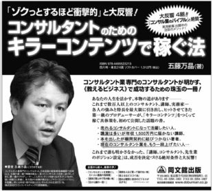 日本経済新聞本紙2面に、発行元の同文館出版による5段2分の1広告にて、五藤の書「キラーコンテンツで稼ぐ法」が、掲載されました。掲載された書籍の内容は、こちらをご覧くださ...