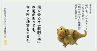 「ゴトウさん、自分がコンサルタントに向いているかどうか訊きに来ました…」── 先般開催した当社のセミナーにお越しになられた方で、その後スポット相談にお越しになられた方の...