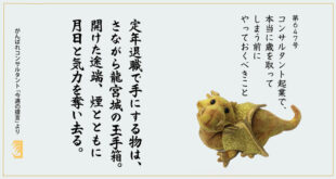「ゴトウさん、今年やろうと思っていたことが大体完了しそうで、やれやれですよ…」── 3年ほど前に当社にご相談にお越しになり、その後コンサルタント起業されたお仲間と、先般...