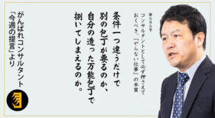 「ゴトウさん、この前、〇〇できますかって訊かれたんですが…」── 親しいコンサルタント仲間と楽しく一杯やっていた時に、ふいに出てきた不思議な話です。 というのも、他のお...