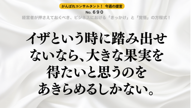 がんばれコンサルタント! 第690号:コンサルタントが押さえておくべき、ビジネスにおける「きっかけ」と「覚悟」の方程式